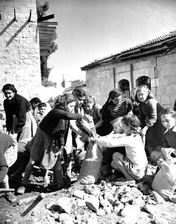 Jewish families being evacuated from Jerusalem by the Arab-Jordanian army. June 1948