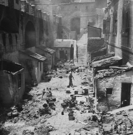Jewish Jerusalem after it was looted by peace-loving Arabs. (Note: the Arabs were evicting families, not fighting soldiers.)