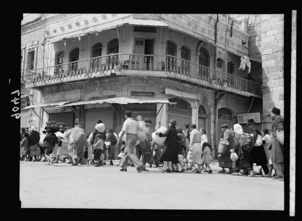 Jewish families leaving the old city through Zion's Gate. June 1948. John Phillips